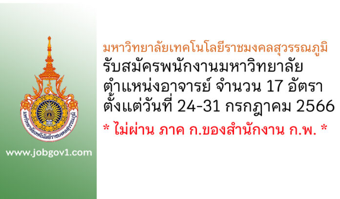 มหาวิทยาลัยเทคโนโลยีราชมงคลสุวรรณภูมิ รับสมัครพนักงานมหาวิทยาลัย ตำแหน่งอาจารย์ 17 อัตรา ตั้งแต่วันที่ 24-31 กรกฎาคม 2566