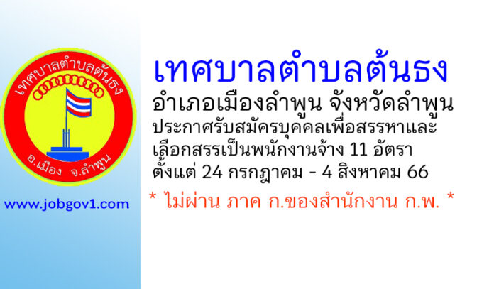 เทศบาลตำบลต้นธง รับสมัครบุคคลเพื่อสรรหาและเลือกสรรเป็นพนักงานจ้าง 11 อัตรา ตั้งแต่ 24 กรกฎาคม – 4 สิงหาคม 2566
