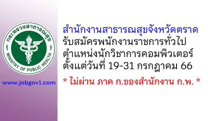 สำนักงานสาธารณสุขจังหวัดตราด รับสมัครพนักงานราชการทั่วไป ตำแหน่งนักวิชาการคอมพิวเตอร์ ตั้งแต่วันที่ 19-31 กรกฎาคม 2566