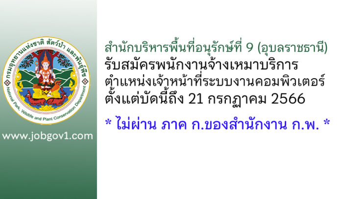 สำนักบริหารพื้นที่อนุรักษ์ที่ 9 (อุบลราชธานี) รับสมัครพนักงานจ้างเหมาบริการ ตำแหน่งเจ้าหน้าที่ระบบงานคอมพิวเตอร์ ตั้งแต่บัดนี้ถึง 21 กรกฏาคม 2566