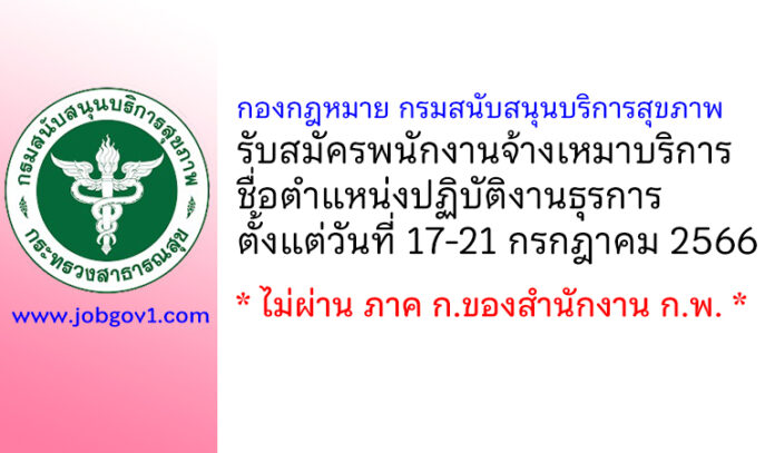 กองกฎหมาย กรมสนับสนุนบริการสุขภาพ รับสมัครพนักงานจ้างเหมาบริการ ตำแหน่งปฏิบัติงานธุรการ ตั้งแต่วันที่ 17-21 กรกฎาคม 2566