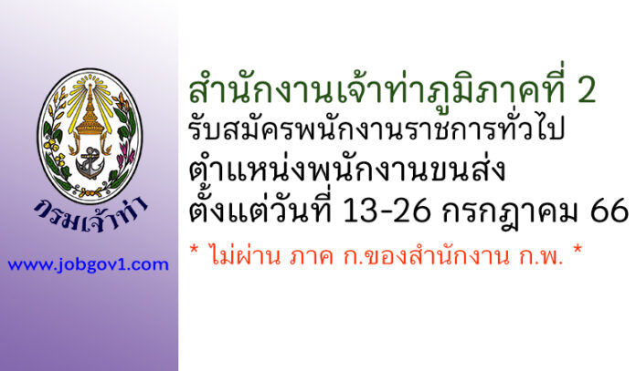 สำนักงานเจ้าท่าภูมิภาคที่ 2 รับสมัครพนักงานราชการทั่วไป ตำแหน่งพนักงานขนส่ง ตั้งแต่วันที่ 13-26 กรกฎาคม 2566