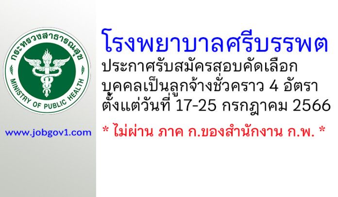 โรงพยาบาลศรีบรรพต รับสมัครสอบคัดเลือกบุคคลเป็นลูกจ้างชั่วคราว 4 อัตรา ตั้งแต่วันที่ 17-25 กรกฎาคม 2566