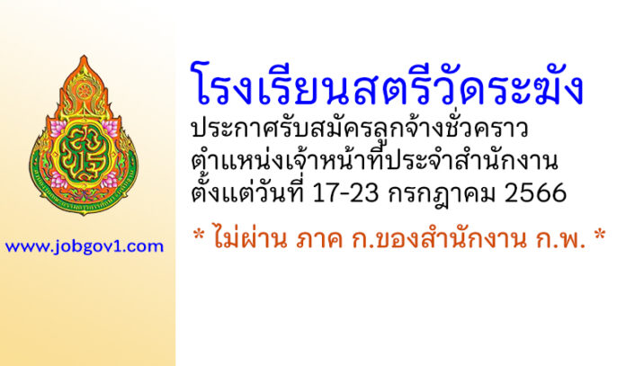โรงเรียนสตรีวัดระฆัง รับสมัครลูกจ้างชั่วคราว ตำแหน่งเจ้าหน้าที่ประจำสำนักงานผู้อำนวยการโรงเรียน ตั้งแต่วันที่ 17-23 กรกฎาคม 2566
