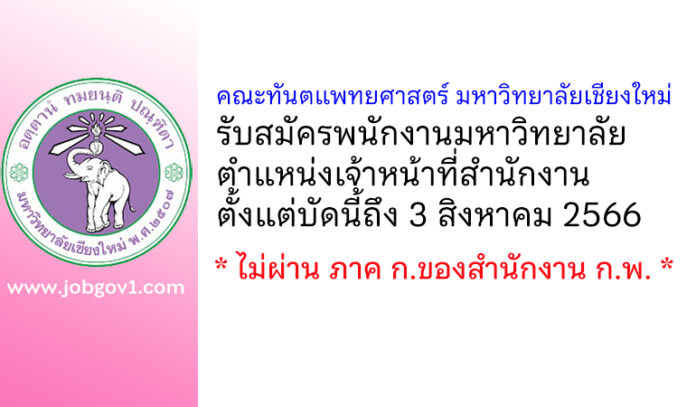 คณะทันตแพทยศาสตร์ มหาวิทยาลัยเชียงใหม่ รับสมัครพนักงานมหาวิทยาลัย ตำแหน่งเจ้าหน้าที่สำนักงาน ตั้งแต่บัดนี้ถึง 3 สิงหาคม 2566
