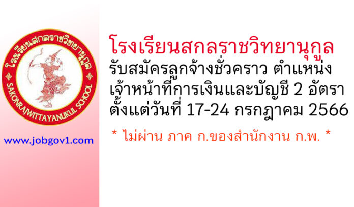 โรงเรียนสกลราชวิทยานุกูล รับสมัครลูกจ้างชั่วคราว ตำแหน่งเจ้าหน้าที่การเงินและบัญชี 2 อัตรา ตั้งแต่วันที่ 17-24 กรกฎาคม 2566