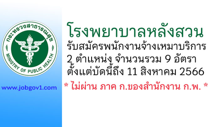 โรงพยาบาลหลังสวน รับสมัครพนักงานจ้างเหมาบริการ 2 ตำแหน่ง 9 อัตรา ตั้งแต่บัดนี้ถึง 11 สิงหาคม 2566