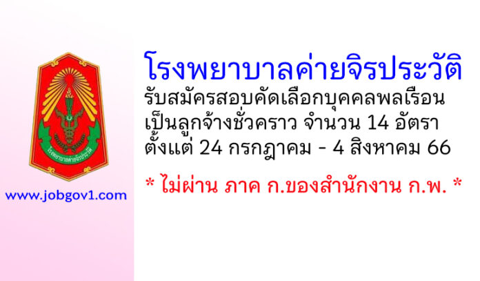 โรงพยาบาลค่ายจิรประวัติ รับสมัครสอบคัดเลือกบุคคลพลเรือนเป็นลูกจ้างชั่วคราว 14 อัตรา ตั้งแต่ 24 กรกฎาคม – 4 สิงหาคม 2566