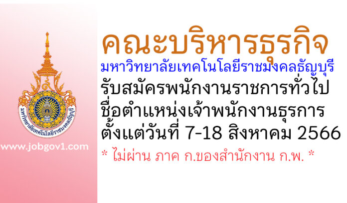 คณะบริหารธุรกิจ มหาวิทยาลัยเทคโนโลยีราชมงคลธัญบุรี รับสมัครพนักงานราชการทั่วไป ตำแหน่งเจ้าพนักงานธุรการ ตั้งแต่วันที่ 7-18 สิงหาคม 2566
