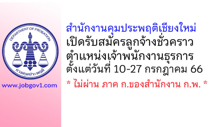 สำนักงานคุมประพฤติเชียงใหม่ รับสมัครลูกจ้างชั่วคราว ตำแหน่งเจ้าพนักงานธุรการ ตั้งแต่วันที่ 10-27 กรกฎาคม 2566