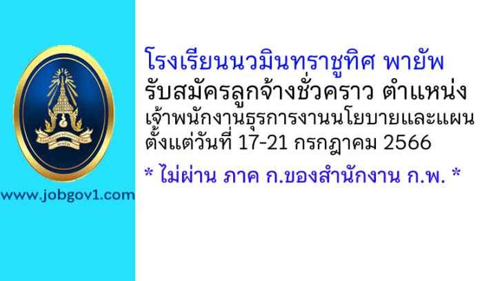 โรงเรียนนวมินทราชูทิศ พายัพ รับสมัครลูกจ้างชั่วคราว ตำแหน่งเจ้าพนักงานธุรการงานนโยบายและแผน ตั้งแต่วันที่ 17-21 กรกฎาคม 2566