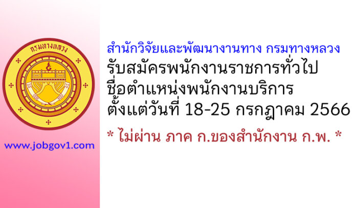 สำนักวิจัยและพัฒนางานทาง กรมทางหลวง รับสมัครพนักงานราชการทั่วไป ตำแหน่งพนักงานบริการ ตั้งแต่วันที่ 18-25 กรกฎาคม 2566