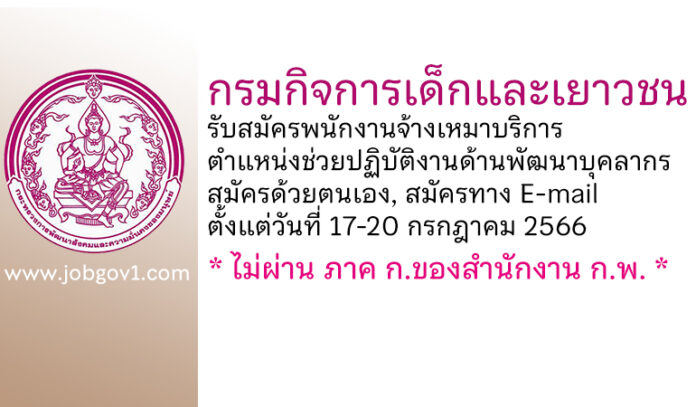 กรมกิจการเด็กและเยาวชน รับสมัครพนักงานจ้างเหมาบริการ ตำแหน่งช่วยปฏิบัติงานด้านพัฒนาบุคลากร ตั้งแต่วันที่ 17-20 กรกฎาคม 2566