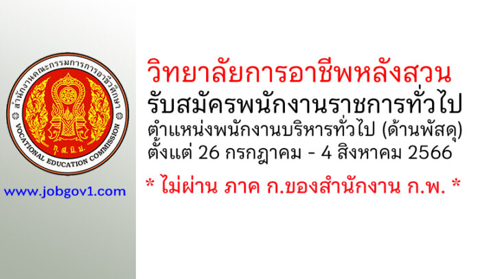 วิทยาลัยการอาชีพหลังสวน รับสมัครพนักงานราชการทั่วไป ตำแหน่งพนักงานบริหารทั่วไป (ด้านพัสดุ) ตั้งแต่ 26 กรกฎาคม – 4 สิงหาคม 2566