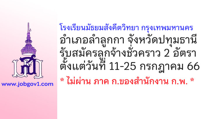 โรงเรียนมัธยมสังคีตวิทยา กรุงเทพมหานคร รับสมัครลูกจ้างชั่วคราว 2 อัตรา ตั้งแต่วันที่ 11-25 กรกฎาคม 2566