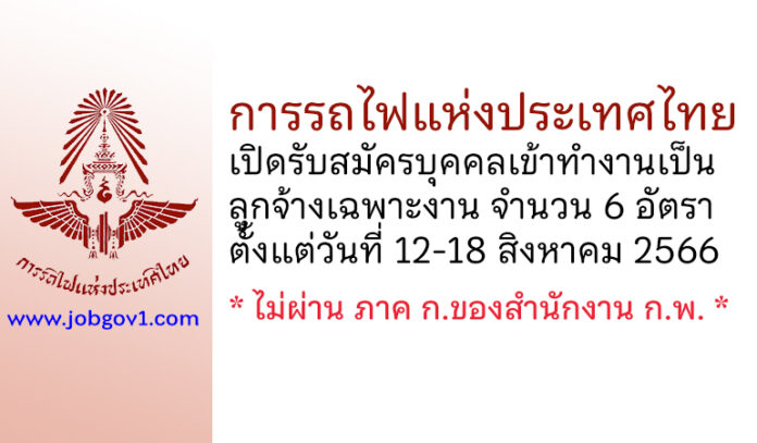 การรถไฟแห่งประเทศไทย รับสมัครบุคคลเข้าทำงานเป็นลูกจ้างเฉพาะงาน 6 อัตรา ตั้งแต่วันที่ 12-18 สิงหาคม 2566