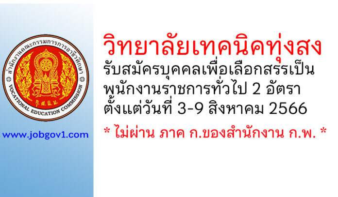 วิทยาลัยเทคนิคทุ่งสง รับสมัครบุคคลเพื่อเลือกสรรเป็นพนักงานราชการทั่วไป 2 อัตรา ตั้งแต่วันที่ 3-9 สิงหาคม 2566
