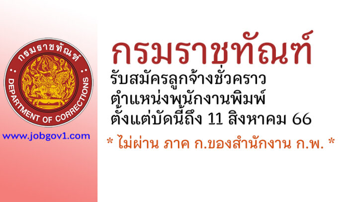 กรมราชทัณฑ์ รับสมัครลูกจ้างชั่วคราว ตำแหน่งพนักงานพิมพ์ ตั้งแต่บัดนี้ถึง 11 สิงหาคม 2566