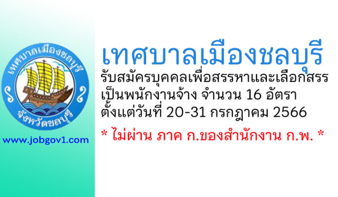 เทศบาลเมืองชลบุรี รับสมัครบุคคลเพื่อสรรหาและเลือกสรรเป็นพนักงานจ้าง 16 อัตรา