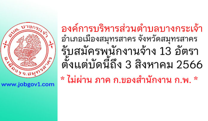 องค์การบริหารส่วนตำบลบางกระเจ้า รับสมัครบุคคลเพื่อสรรหาและเลือกสรรเป็นพนักงานจ้าง 13 อัตรา ตั้งแต่บัดนี้ถึง 3 สิงหาคม 2566