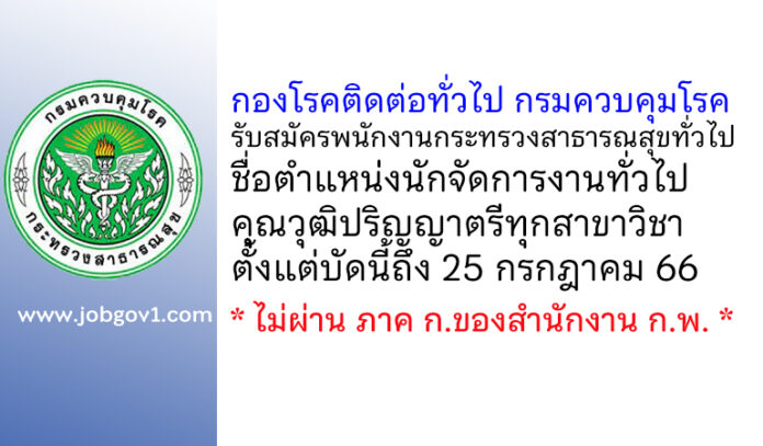 กองโรคติดต่อทั่วไป กรมควบคุมโรค รับสมัครพนักงานกระทรวงสาธารณสุขทั่วไป ตำแหน่งนักจัดการงานทั่วไป ตั้งแต่บัดนี้ถึง 25 กรกฎาคม 2566