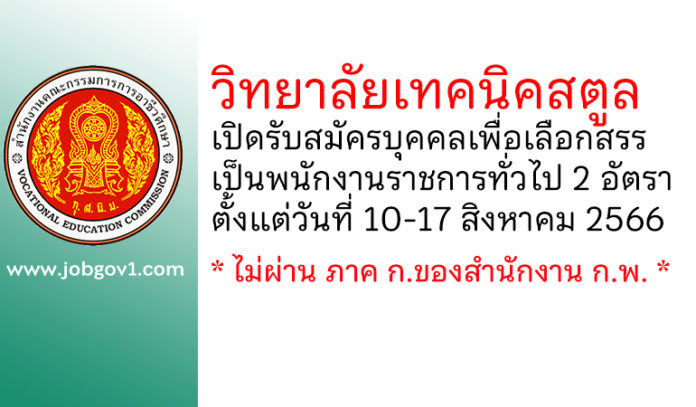 วิทยาลัยเทคนิคสตูล รับสมัครบุคคลเพื่อเลือกสรรเป็นพนักงานราชการทั่วไป 2 อัตรา ตั้งแต่วันที่ 10-17 สิงหาคม 2566
