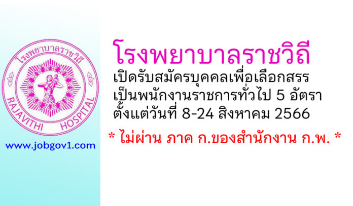 โรงพยาบาลราชวิถี รับสมัครบุคคลเพื่อเลือกสรรเป็นพนักงานราชการทั่วไป 5 อัตรา ตั้งแต่วันที่ 8-24 สิงหาคม 2566