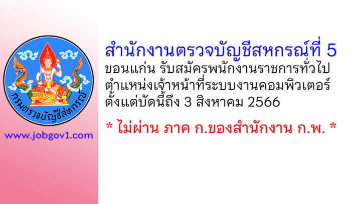 สำนักงานตรวจบัญชีสหกรณ์ที่ 5 รับสมัครพนักงานราชการทั่วไป ตำแหน่งเจ้าหน้าที่ระบบงานคอมพิวเตอร์ ตั้งแต่บัดนี้ถึง 3 สิงหาคม 2566