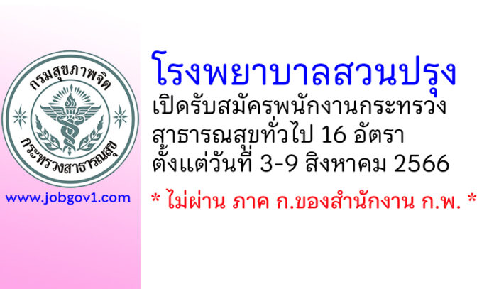 โรงพยาบาลสวนปรุง รับสมัครพนักงานกระทรวงสาธารณสุขทั่วไป 16 อัตรา ตั้งแต่วันที่ 3-9 สิงหาคม 2566