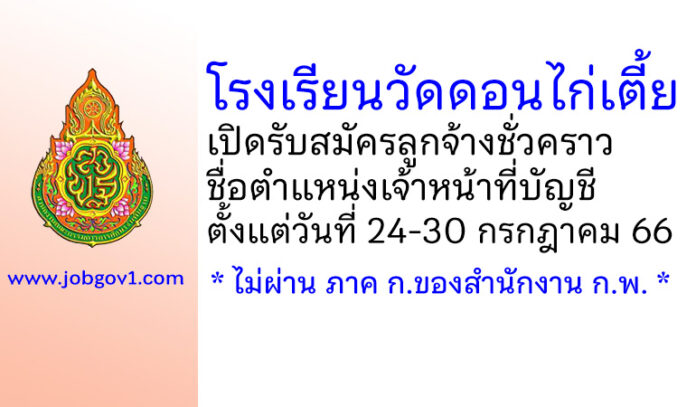 ประกาศโรงเรียนวัดดอนไก่เตี้ย เรื่อง รับสมัครคัดเลือกบุคคลเพื่อจ้างเป็นลูกจ้างชั่วคราว ตำแหน่ง เจ้าหน้าที่บัญชี จำนวน 1 อัตรา