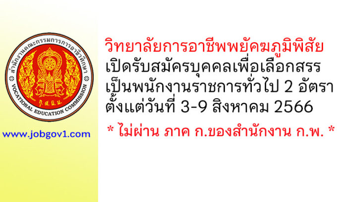 วิทยาลัยการอาชีพพยัคฆภูมิพิสัย รับสมัครบุคคลเพื่อเลือกสรรเป็นพนักงานราชการทั่วไป 2 อัตรา ตั้งแต่วันที่ 3-9 สิงหาคม 2566