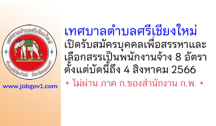 เทศบาลตำบลศรีเชียงใหม่ รับสมัครบุคคลเพื่อสรรหาและเลือกสรรเป็นพนักงานจ้าง 8 อัตรา ตั้งแต่บัดนี้ถึง 4 สิงหาคม 2566