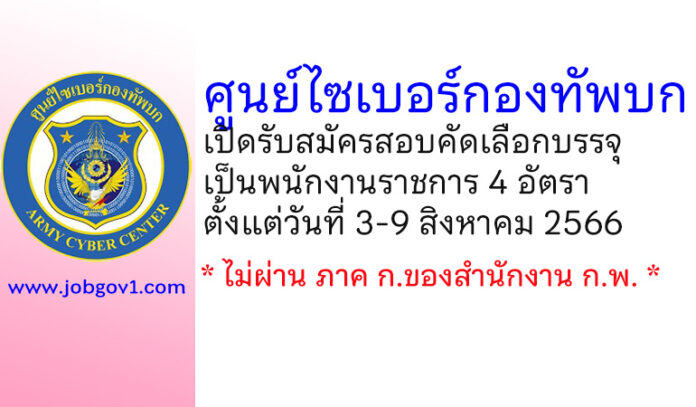 ศูนย์ไซเบอร์กองทัพบก รับสมัครสอบคัดเลือกบรรจุเป็นพนักงานราชการ 4 อัตรา ตั้งแต่วันที่ 3-9 สิงหาคม 2566