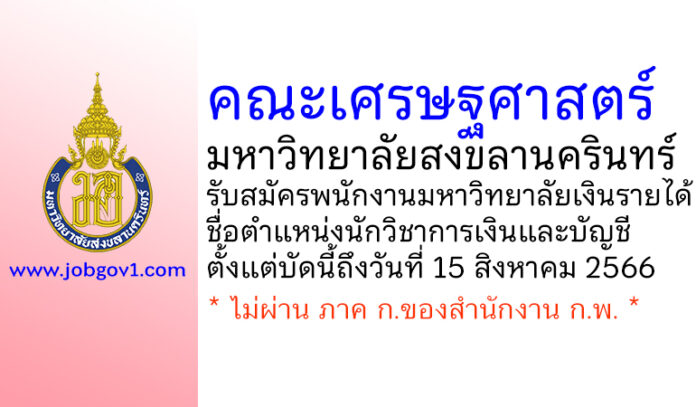 คณะเศรษฐศาสตร์ มหาวิทยาลัยสงขลานครินทร์ รับสมัครพนักงานมหาวิทยาลัยเงินรายได้ ตำแหน่งนักวิชาการเงินและบัญชี ตั้งแต่บัดนี้ถึงวันที่ 15 สิงหาคม 2566