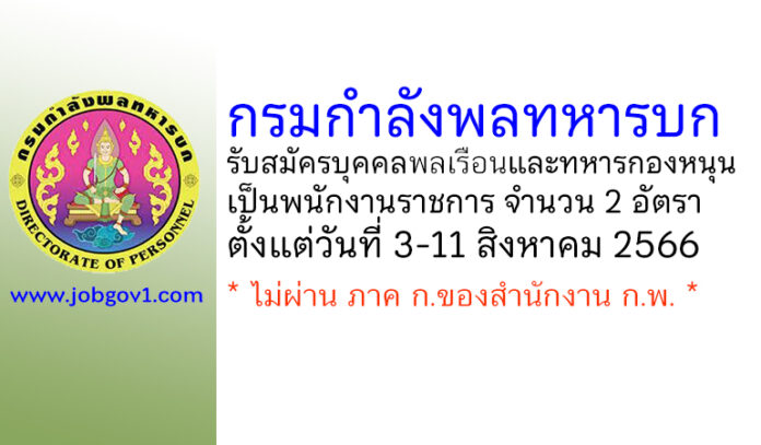 กรมกำลังพลทหารบก รับสมัครบุคคลพลเรือนและทหารกองหนุนเป็นพนักงานราชการ 2 อัตรา ตั้งแต่วันที่ 3-11 สิงหาคม 2566