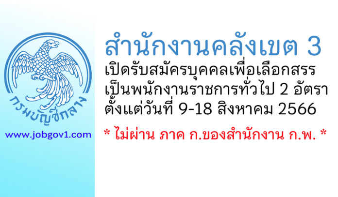 สำนักงานคลังเขต 3 รับสมัครบุคคลเพื่อเลือกสรรเป็นพนักงานราชการทั่วไป 2 อัตรา ตั้งแต่วันที่ 9-18 สิงหาคม 2566