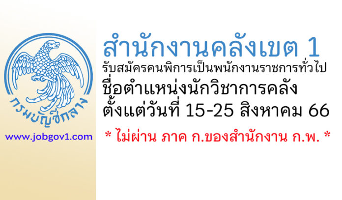 สำนักงานคลังเขต 1 รับสมัครคนพิการเป็นพนักงานราชการทั่วไป ตำแหน่งนักวิชาการคลัง ตั้งแต่วันที่ 15-25 สิงหาคม 2566