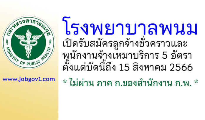 โรงพยาบาลพนม รับสมัครลูกจ้างชั่วคราว และพนักงานจ้างเหมาบริการ 5 อัตรา ตั้งแต่บัดนี้ถึง 15 สิงหาคม 2566