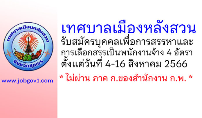 เทศบาลเมืองหลังสวน รับสมัครบุคคลเพื่อการสรรหาและการเลือกสรรเป็นพนักงานจ้าง 4 อัตรา ตั้งแต่วันที่ 4-16 สิงหาคม 2566