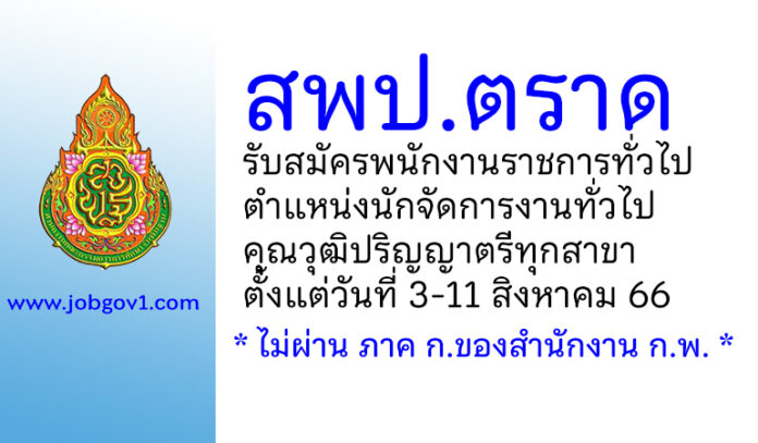 สพป.ตราด รับสมัครพนักงานราชการทั่วไป ตำแหน่งนักจัดการงานทั่วไป ตั้งแต่วันที่ 3-11 สิงหาคม 2566