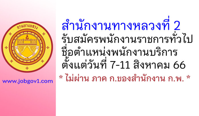 สำนักงานทางหลวงที่ 2 รับสมัครพนักงานราชการทั่วไป ตำแหน่งพนักงานบริการ ตั้งแต่วันที่ 7-11 สิงหาคม 2566