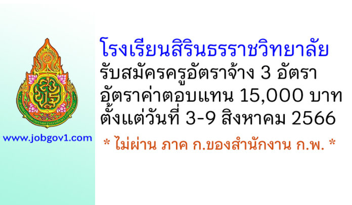 โรงเรียนสิรินธรราชวิทยาลัย รับสมัครครูอัตราจ้าง จำนวน 3 อัตรา ตั้งแต่วันที่ 3-9 สิงหาคม 2566