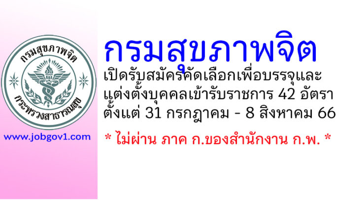กรมสุขภาพจิต รับสมัครคัดเลือกเพื่อบรรจุและแต่งตั้งบุคคลเข้ารับราชการ 42 อัตรา ตั้งแต่ 31 กรกฎาคม – 8 สิงหาคม 2566