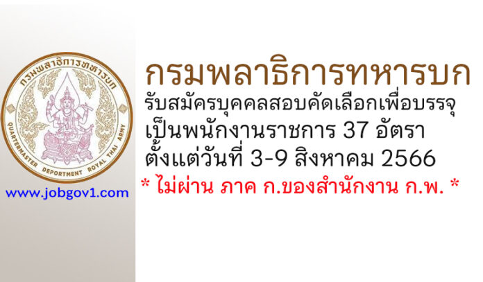 กรมพลาธิการทหารบก รับสมัครบุคคลสอบคัดเลือกเพื่อบรรจุเป็นพนักงานราชการ 37 อัตรา ตั้งแต่วันที่ 3-9 สิงหาคม 2566