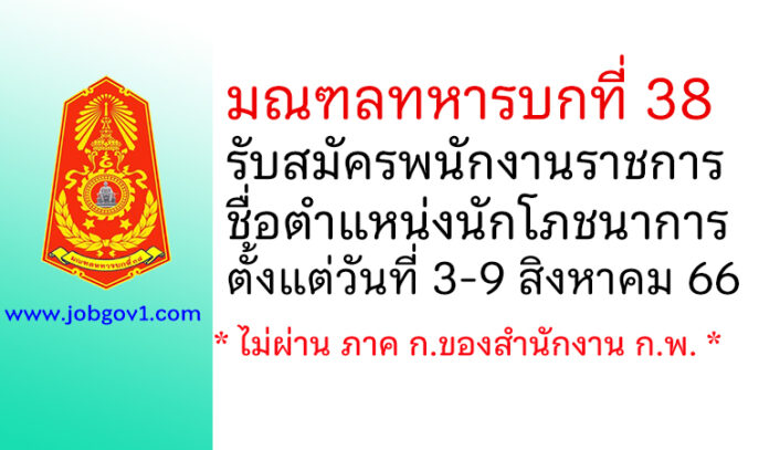 มณฑลทหารบกที่ 38 รับสมัครพนักงานราชการ ตำแหน่งนักโภชนาการ ตั้งแต่วันที่ 3-9 สิงหาคม 2566