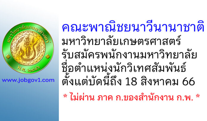 คณะพาณิชยนาวีนานาชาติ มหาวิทยาลัยเกษตรศาสตร์ รับสมัครพนักงานมหาวิทยาลัย ตำแหน่งนักวิเทศสัมพันธ์ ตั้งแต่บัดนี้ถึง 18 สิงหาคม 2566