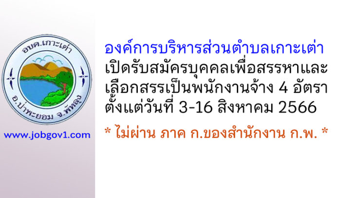 องค์การบริหารส่วนตำบลเกาะเต่า รับสมัครบุคคลเพื่อสรรหาและเลือกสรรเป็นพนักงานจ้าง 4 อัตรา ตั้งแต่วันที่ 3-16 สิงหาคม 2566