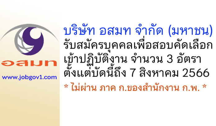 บริษัท อสมท จำกัด (มหาชน) รับสมัครบุคคลเพื่อสอบคัดเลือกเข้าปฏิบัติงาน 3 อัตรา ตั้งแต่บัดนี้ถึง 7 สิงหาคม 2566