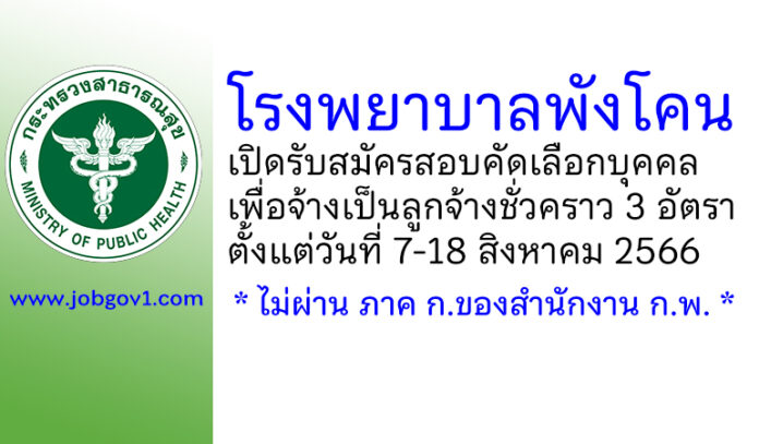 โรงพยาบาลพังโคน รับสมัครสอบคัดเลือกบุคคลเพื่อจ้างเป็นลูกจ้างชั่วคราว 3 อัตรา ตั้งแต่วันที่ 7-18 สิงหาคม 2566