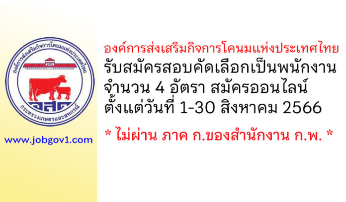 องค์การส่งเสริมกิจการโคนมแห่งประเทศไทย รับสมัครสอบคัดเลือกบุคคลทั่วไปเพื่อบรรจุและแต่งตั้งเป็นพนักงาน 4 อัตรา ตั้งแต่วันที่ 1-30 สิงหาคม 2566